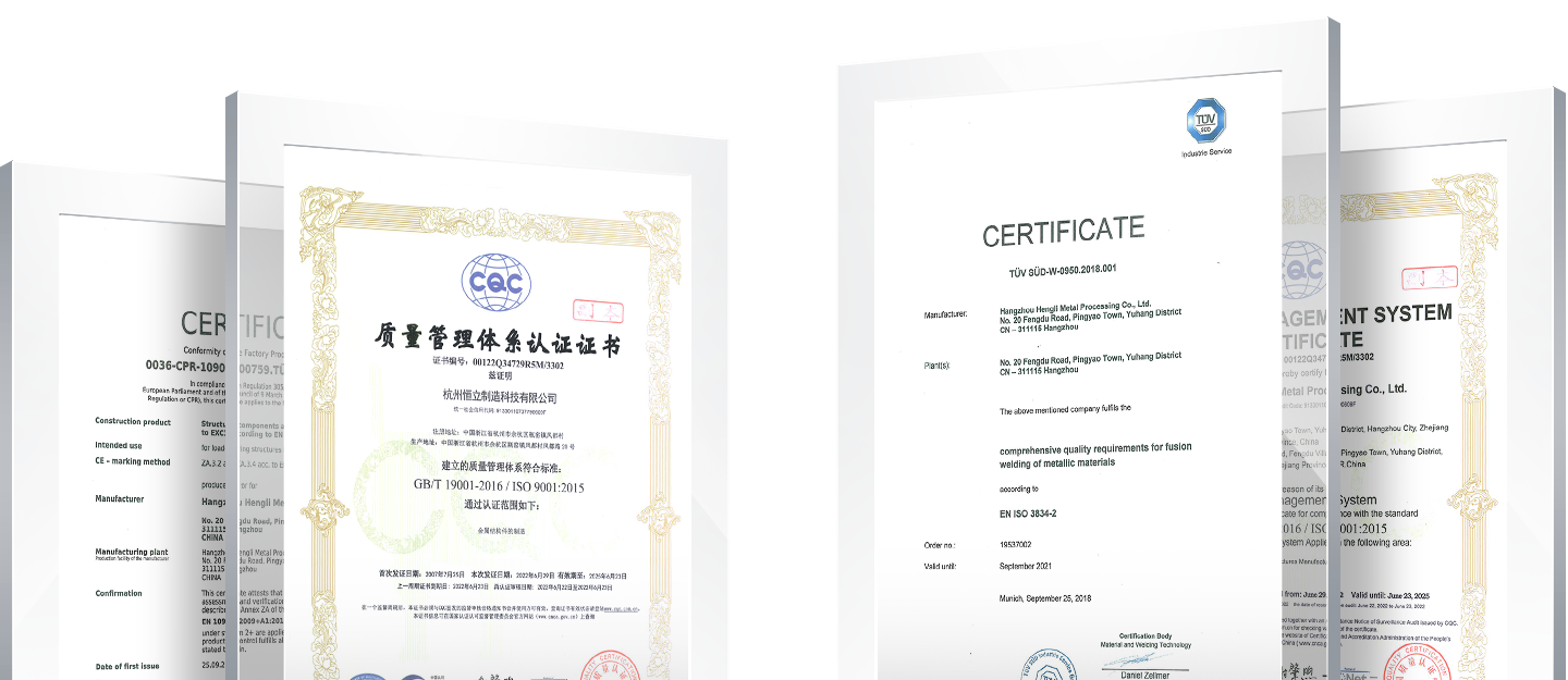 恒立制造榮獲多項質(zhì)量認(rèn)證,包括ISO 3834國際焊接質(zhì)量體系認(rèn)證;ISO 9001國際質(zhì)量管理體系認(rèn)證;EN-1090-1認(rèn)證